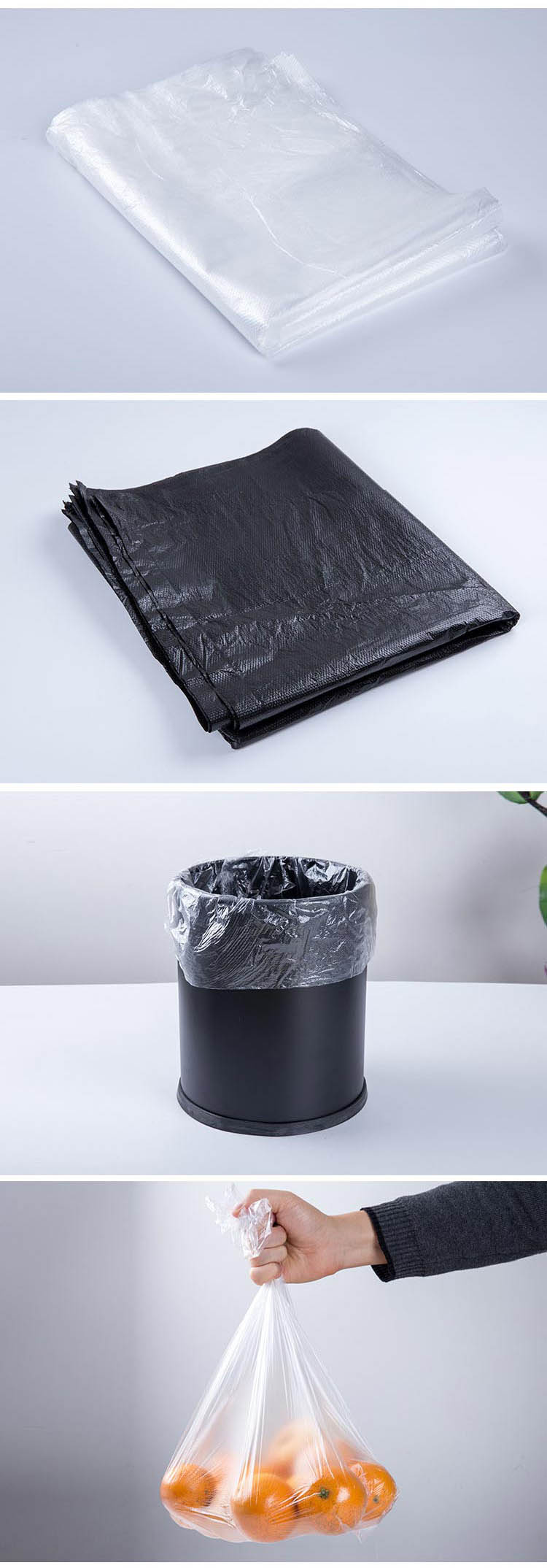 The garbage bag is made of PE new material, with little pollution, no odor and good load bearing effect, which is the first choice for all hotels.