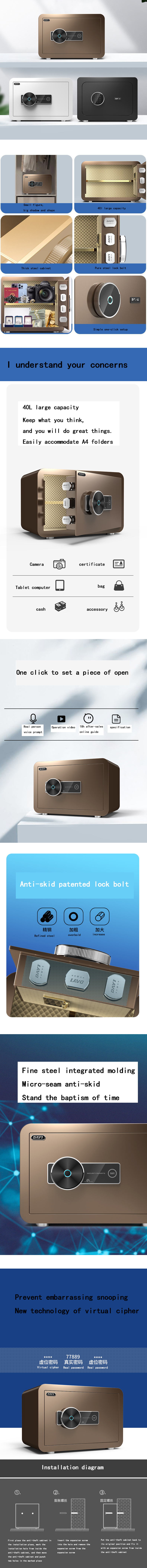 Concealed small home safe all steel anti-theft safe box