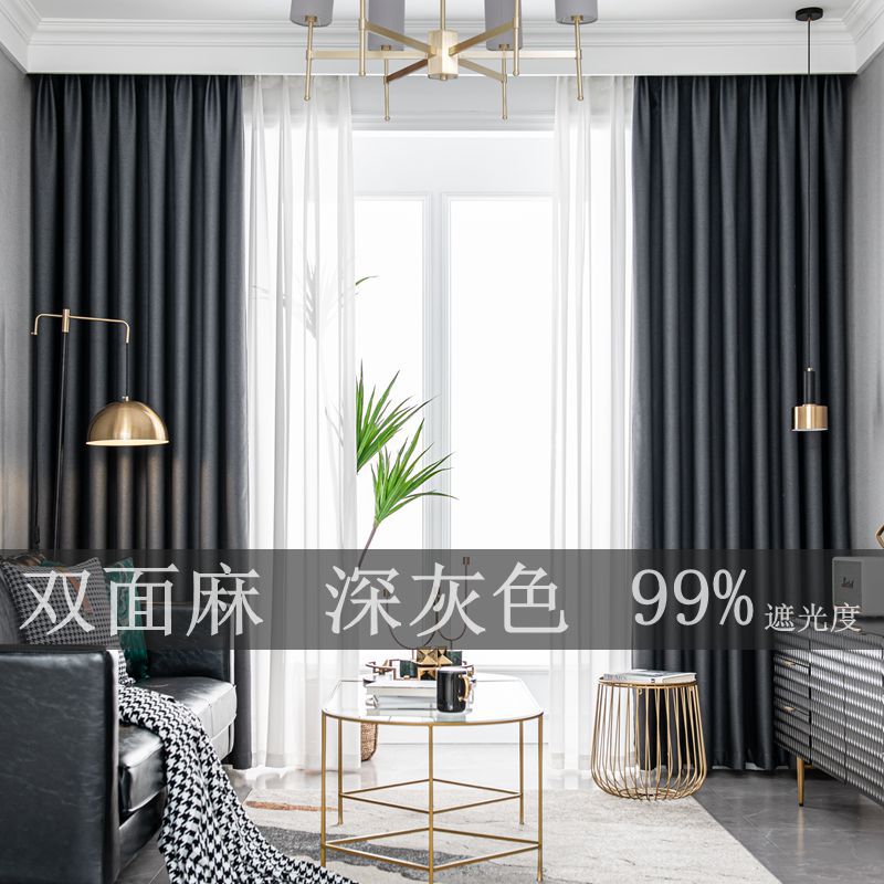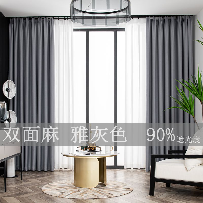 现代简约纯色棉麻窗帘