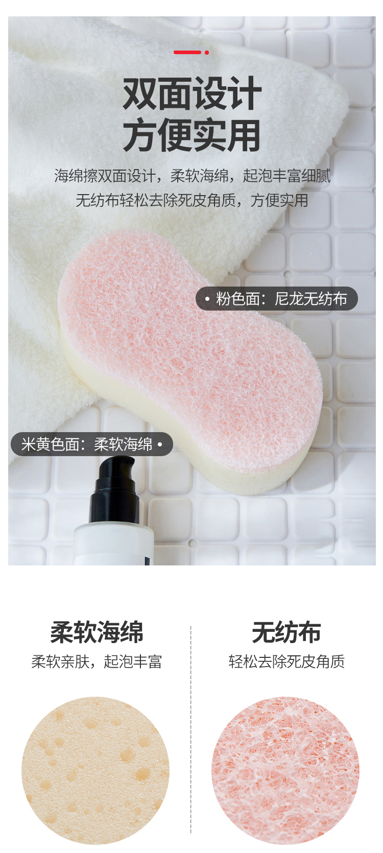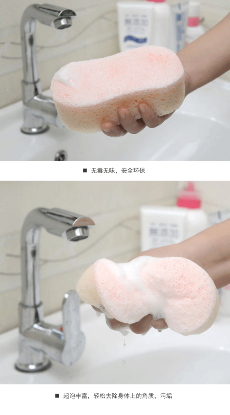 利用优质海绵,轻松打起泡泡,轻松去角质,贴合皮肤,拥有独特的质感。做工精细,松紧口设计,做工整齐。