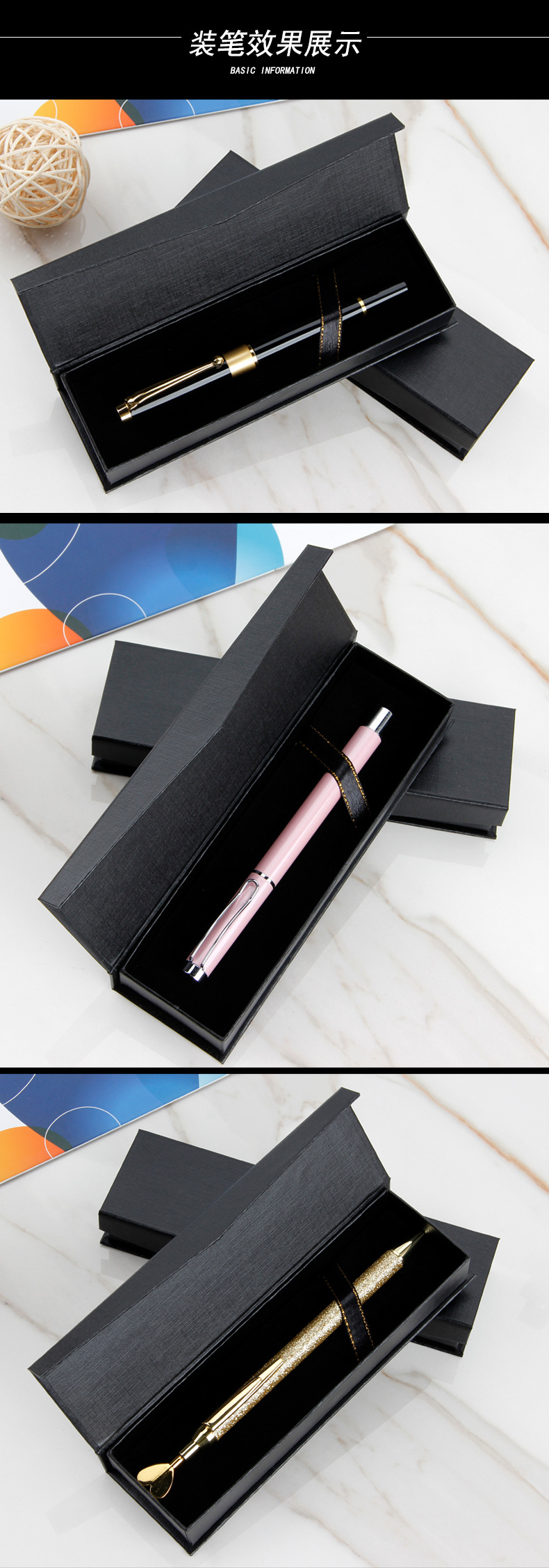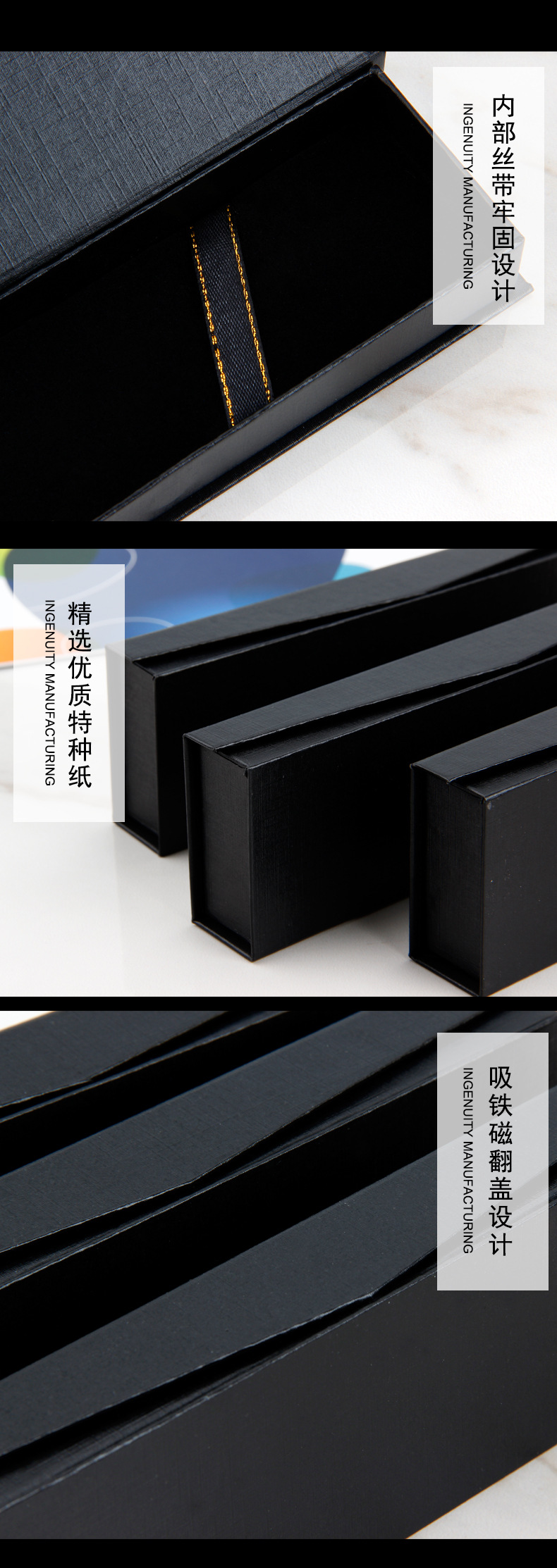 长方形吸铁石翻盖礼品笔盒