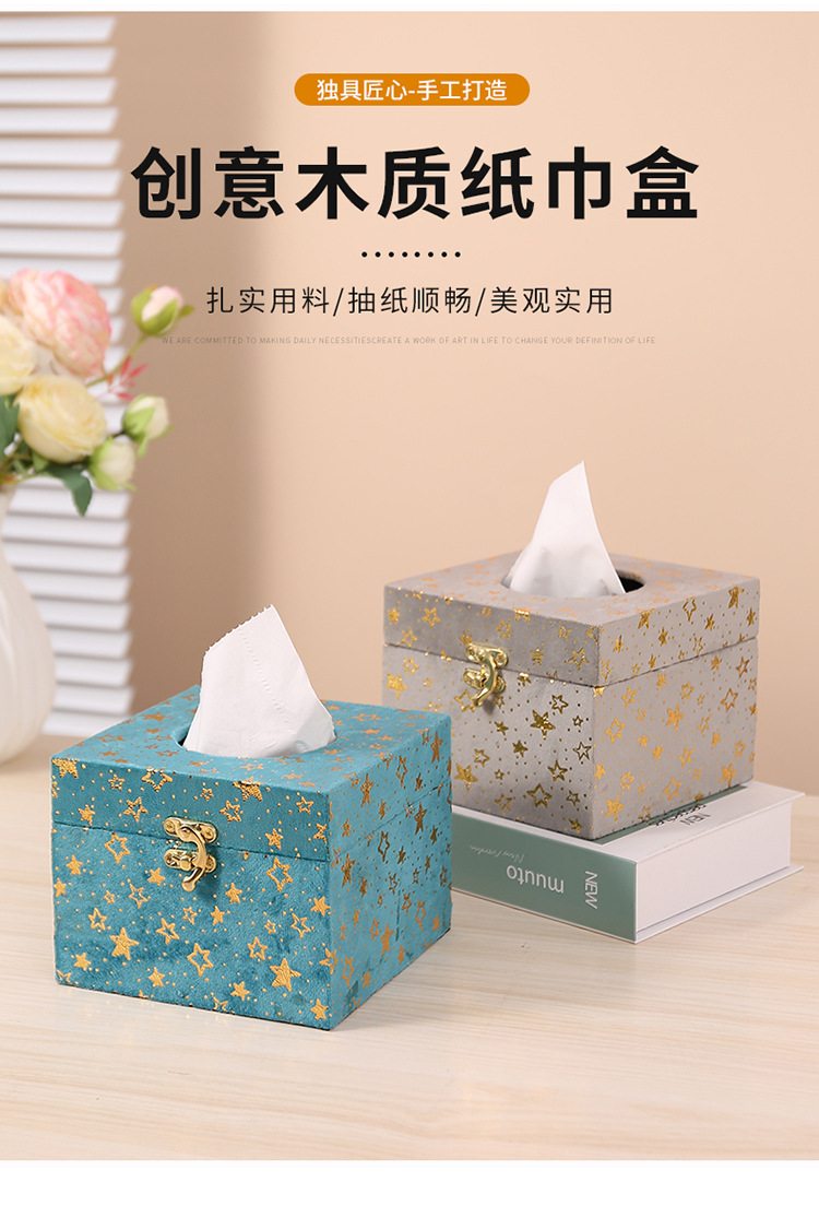创意木质正方形纸巾盒