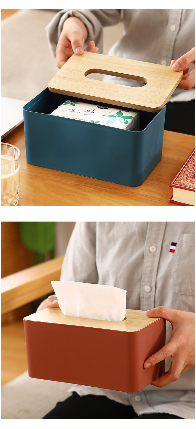 创意木盖纸巾盒长方形