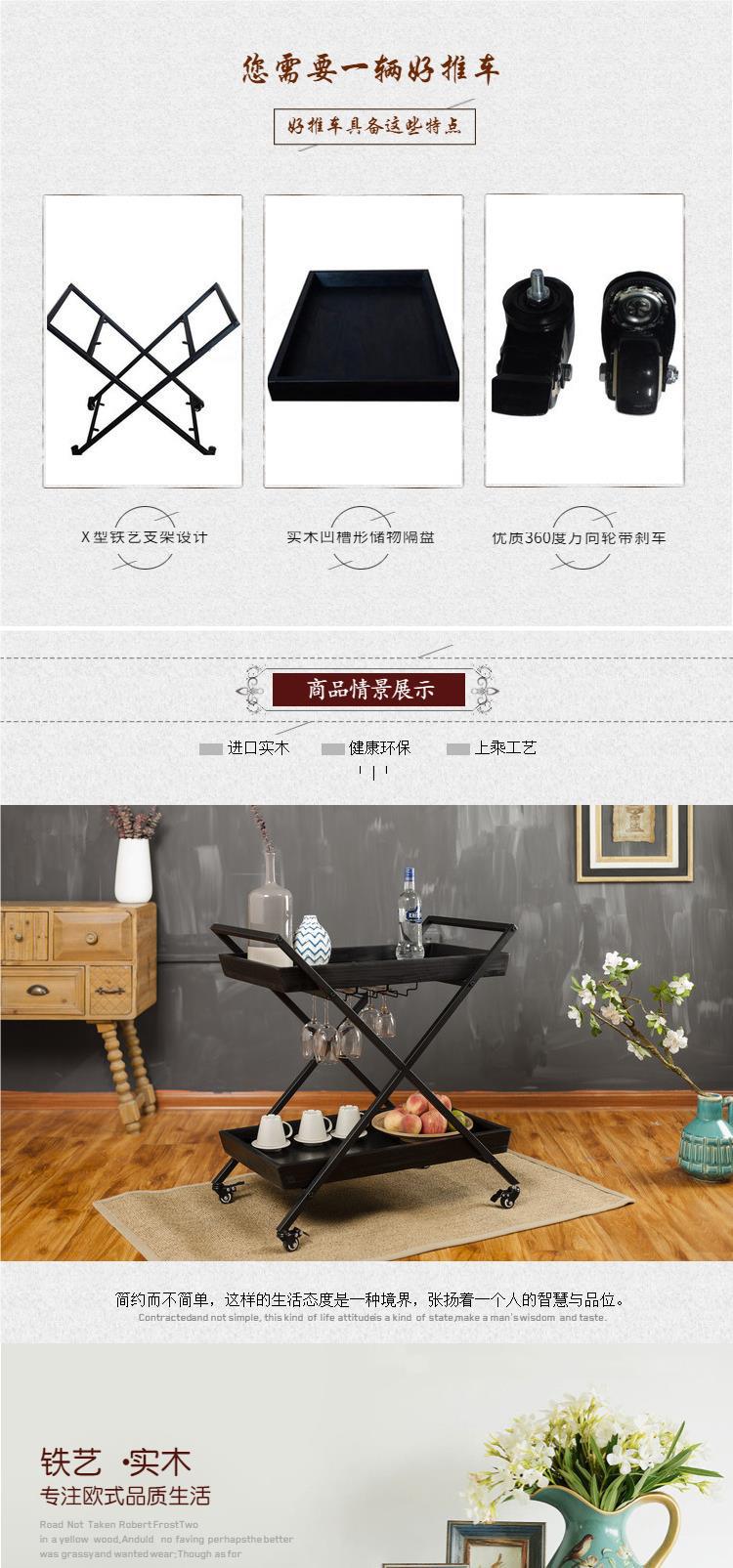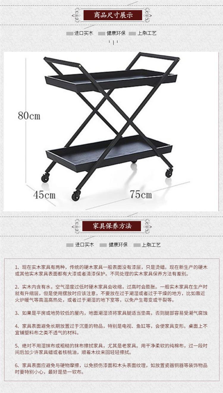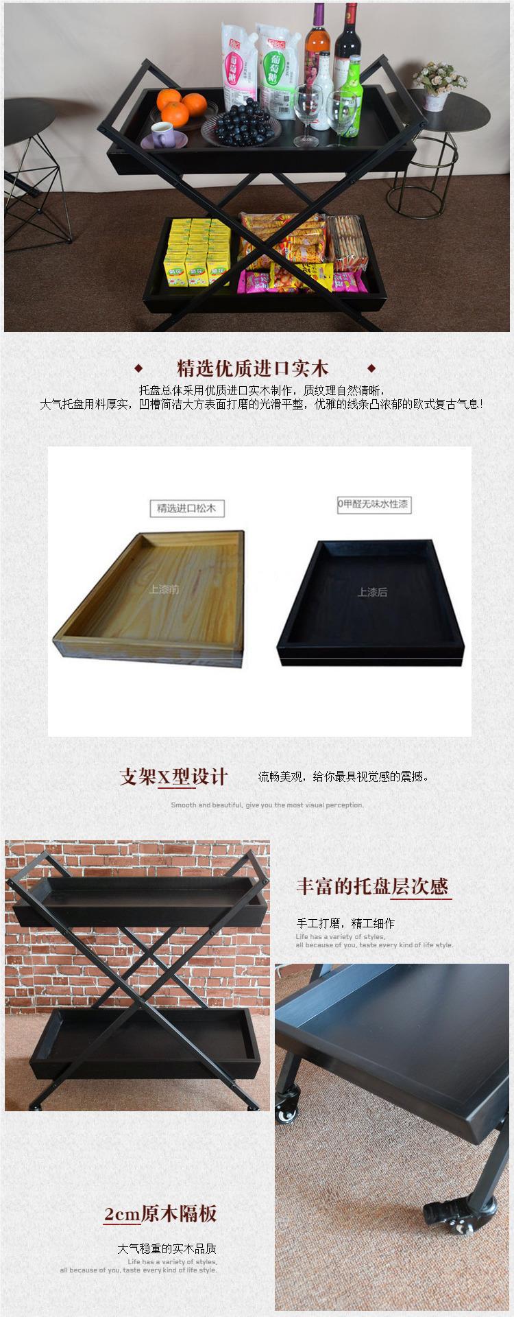 复古实木铁艺餐车酒店酒水服务车