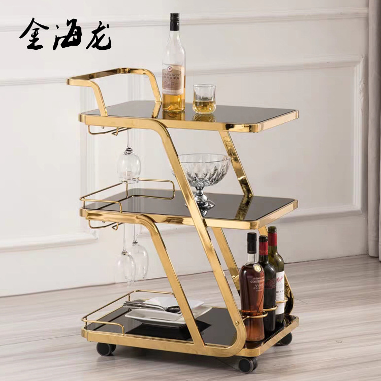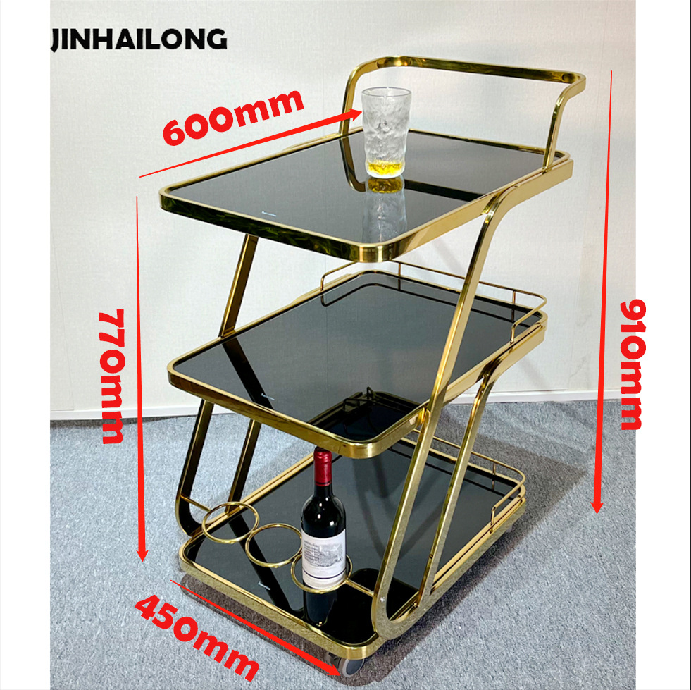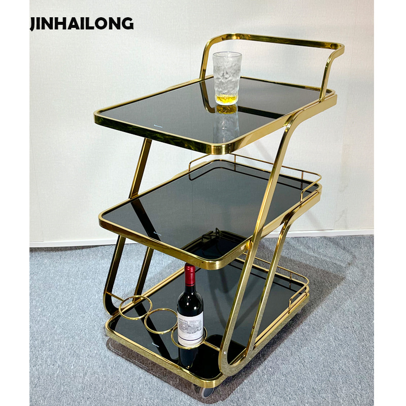 酒店用餐车三层不锈钢玻璃酒水车