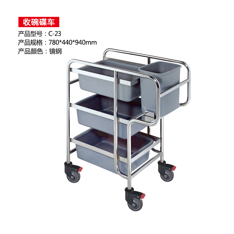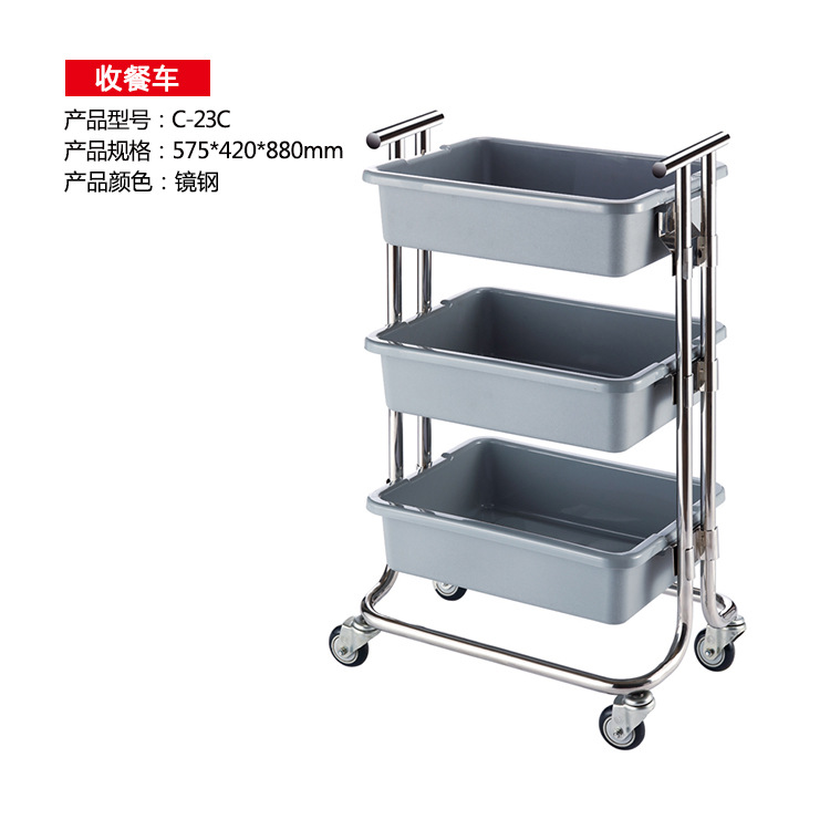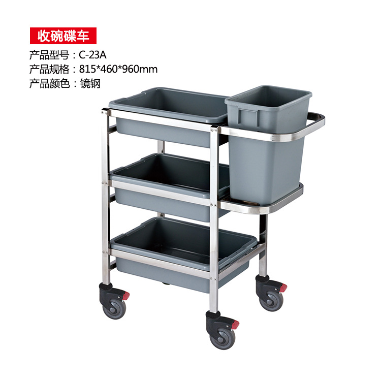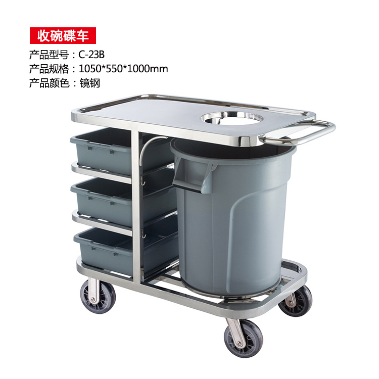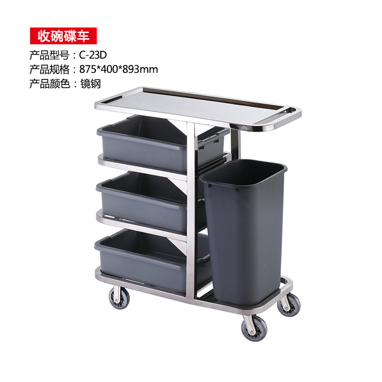 三层不锈钢收集车收餐车收碗车带垃圾桶酒店餐厅车服务车