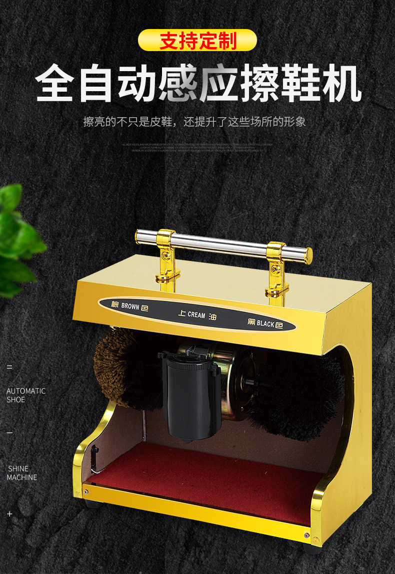 擦鞋机器自动全自动感应擦鞋机公用酒店大堂电动钛金刷鞋机器