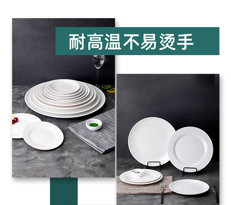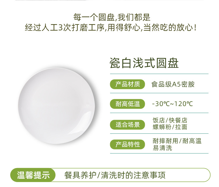 白色仿瓷密胺餐具圆盘平盘碟子圆形盘子