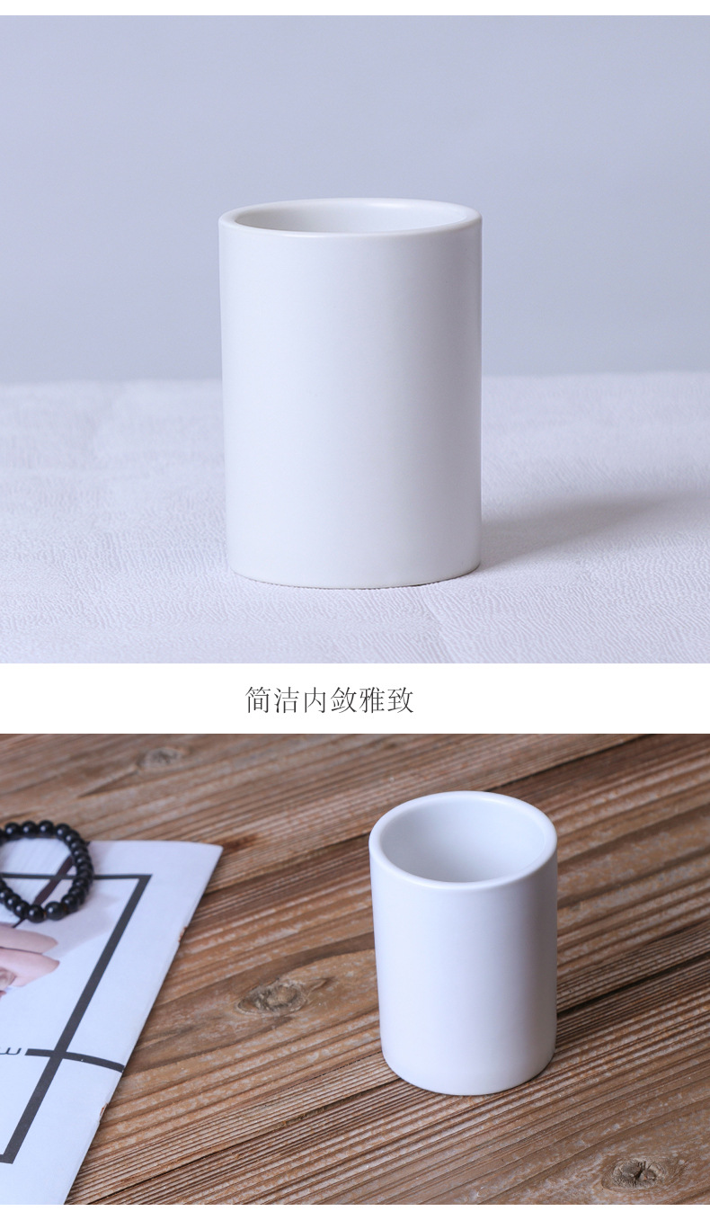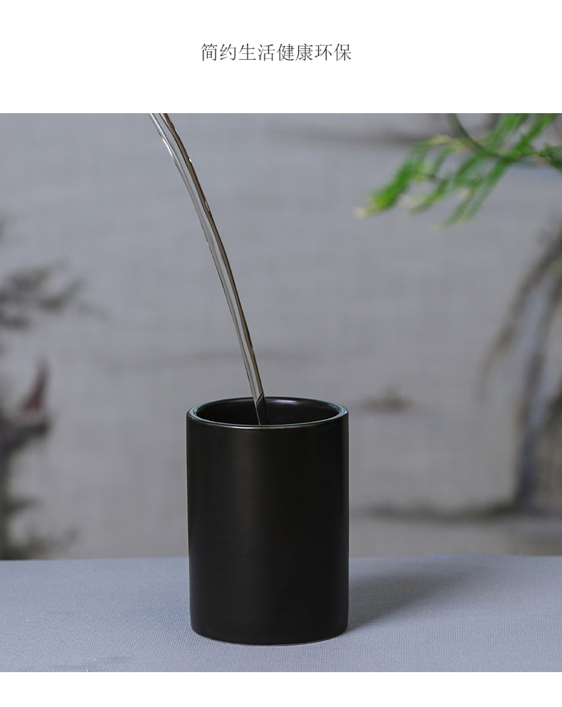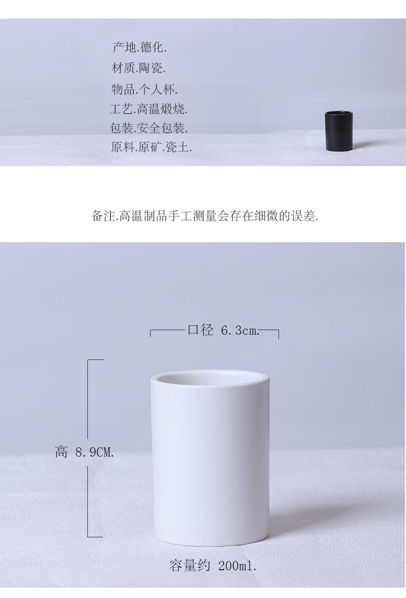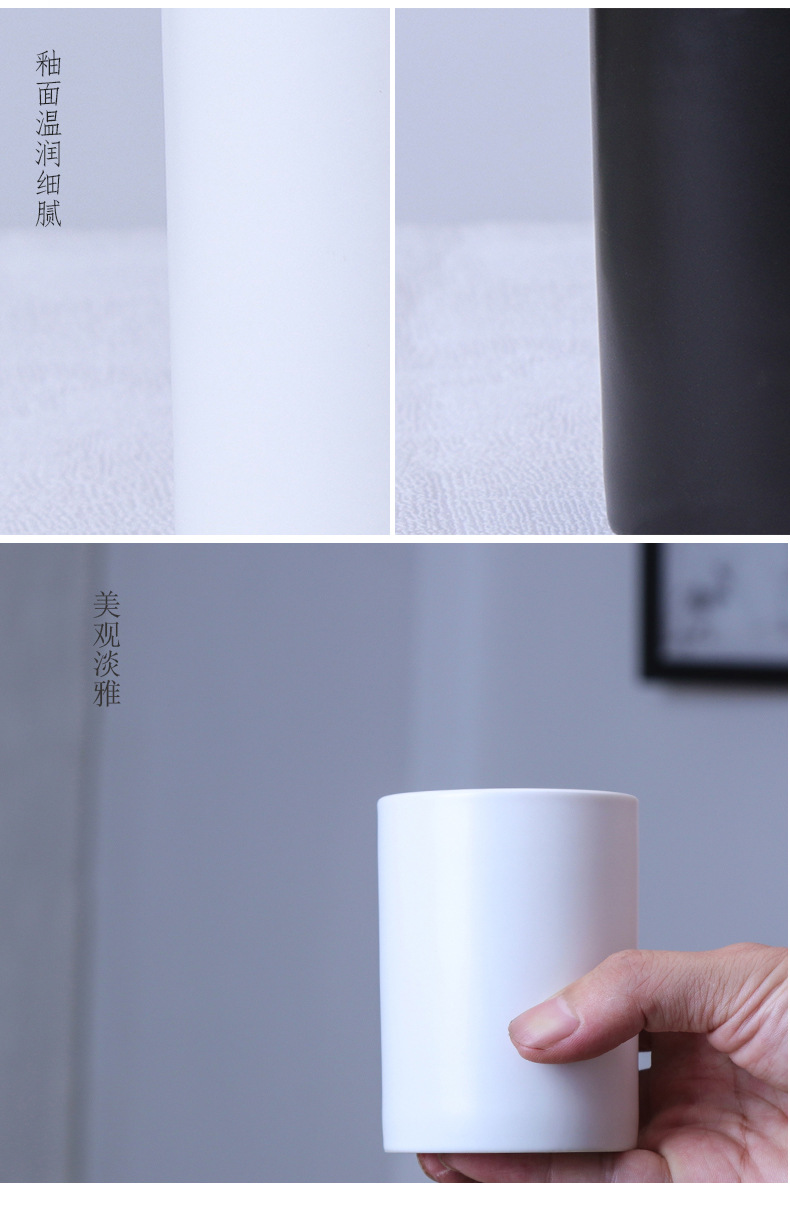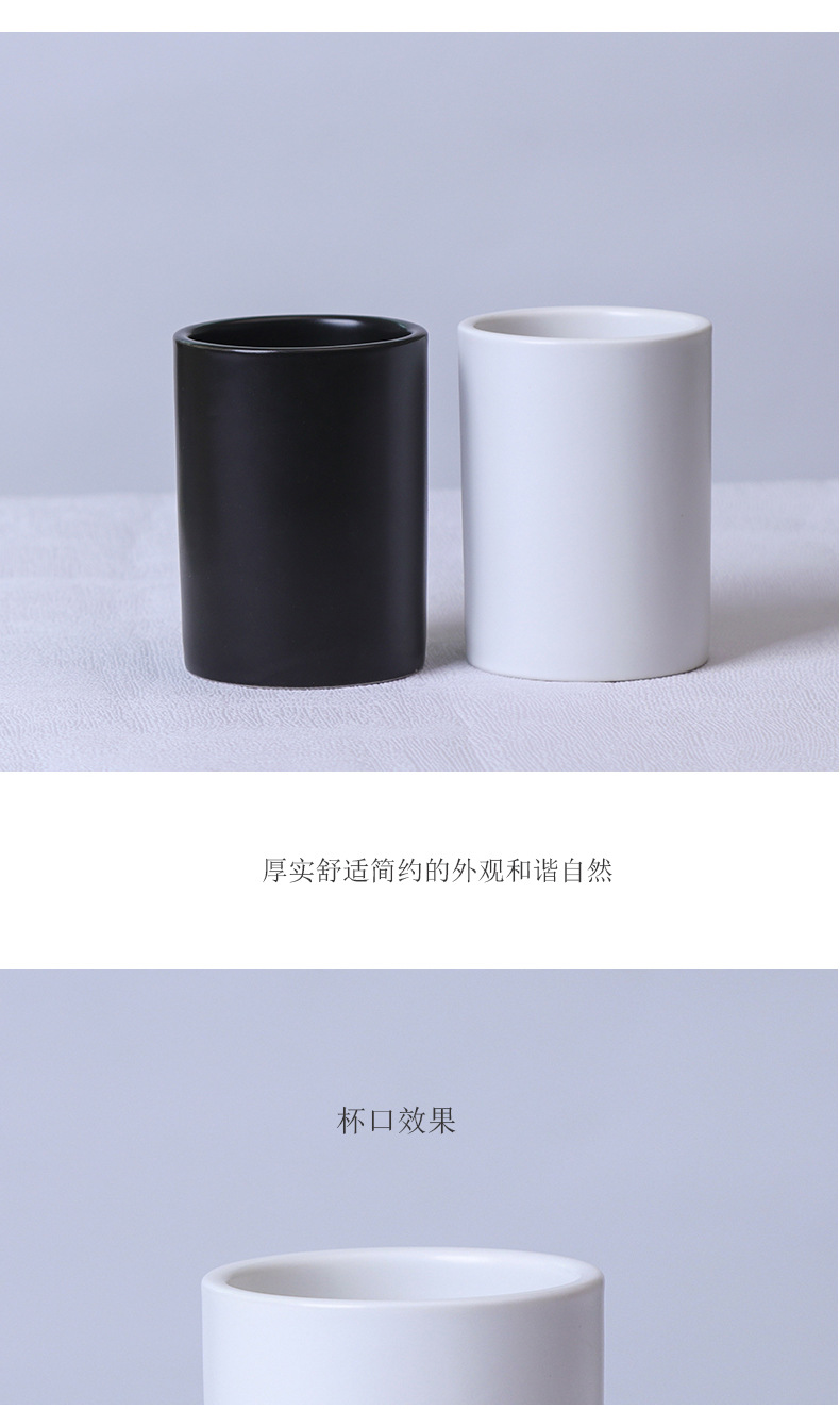 简约日式黑白陶瓷马克杯直筒杯茶杯无手柄酒店牙刷杯漱口杯